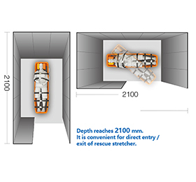 Этот тип лифта в основном предназначен для перевозки носилок и колес или кровати.